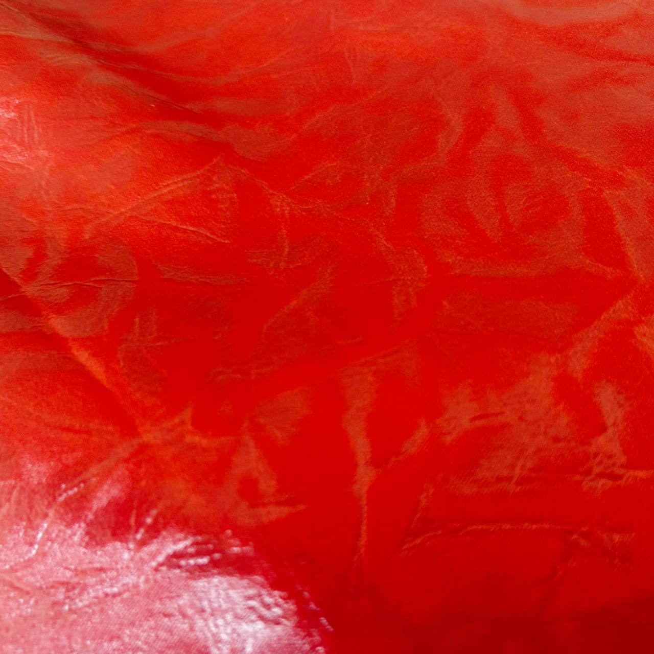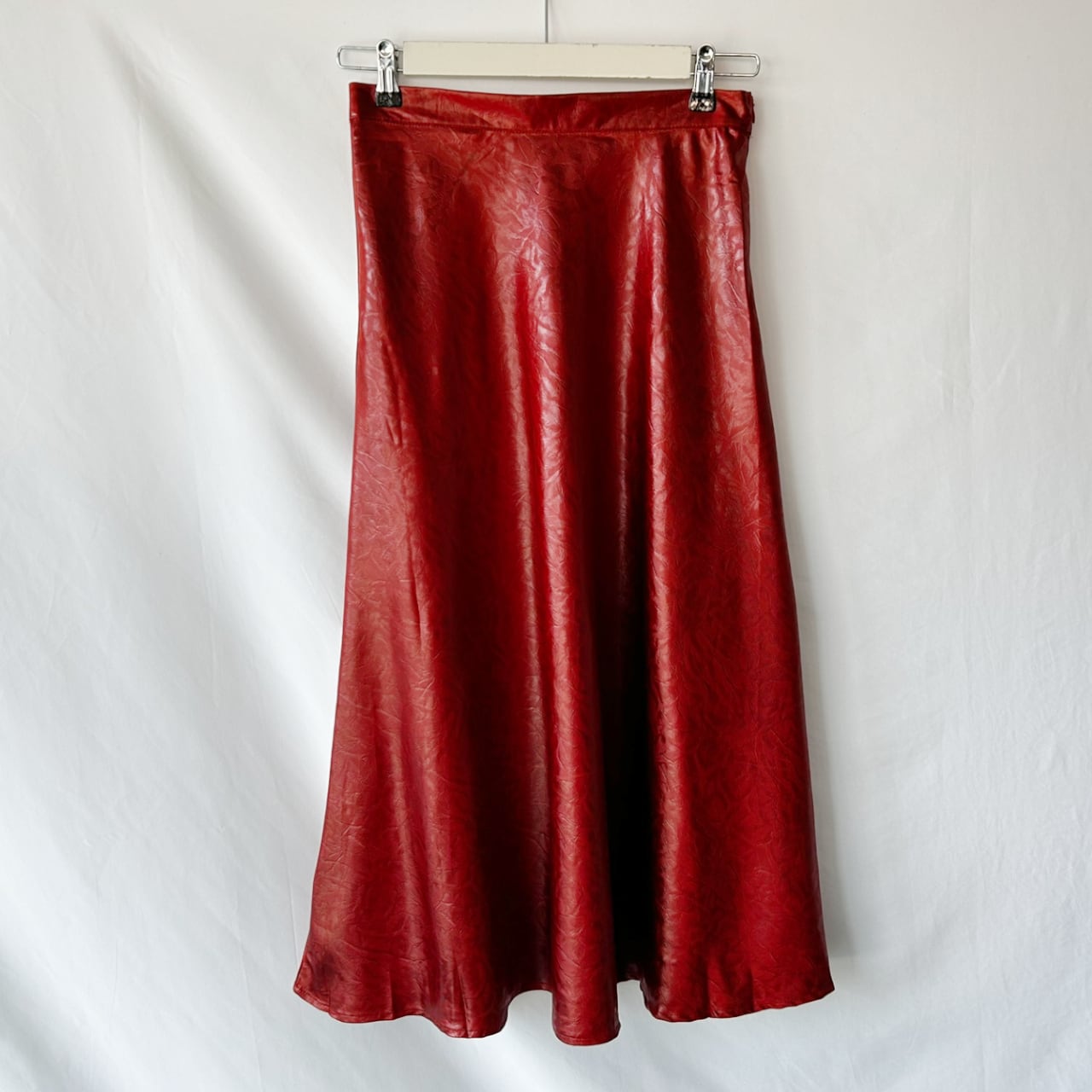 フェイクレザー フレアスカート 光沢 ロング丈 Aライン レッド レディース