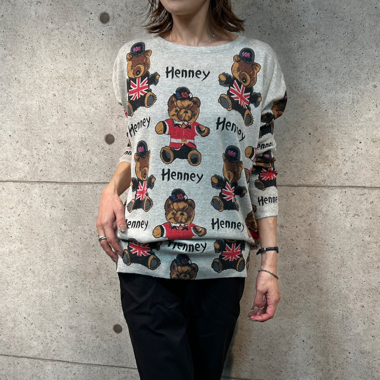 愛らしい英国風ベアが並ぶ、遊び心たっぷりのニットトップス。