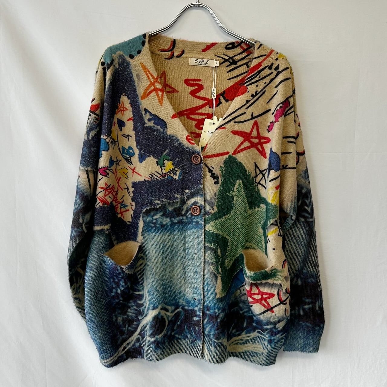 #ニットカーディガン #アート柄カーディガン #星柄ニット #ゆったりカーデ #カラフルカーディガン #個性派ファッション #大人カジュアル #DeuxPlaces #秋冬コーデ