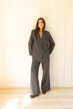 テーラードカラーとダブルボタンのデザインが、フォーマルシーンにも相応しい印象を与えます。