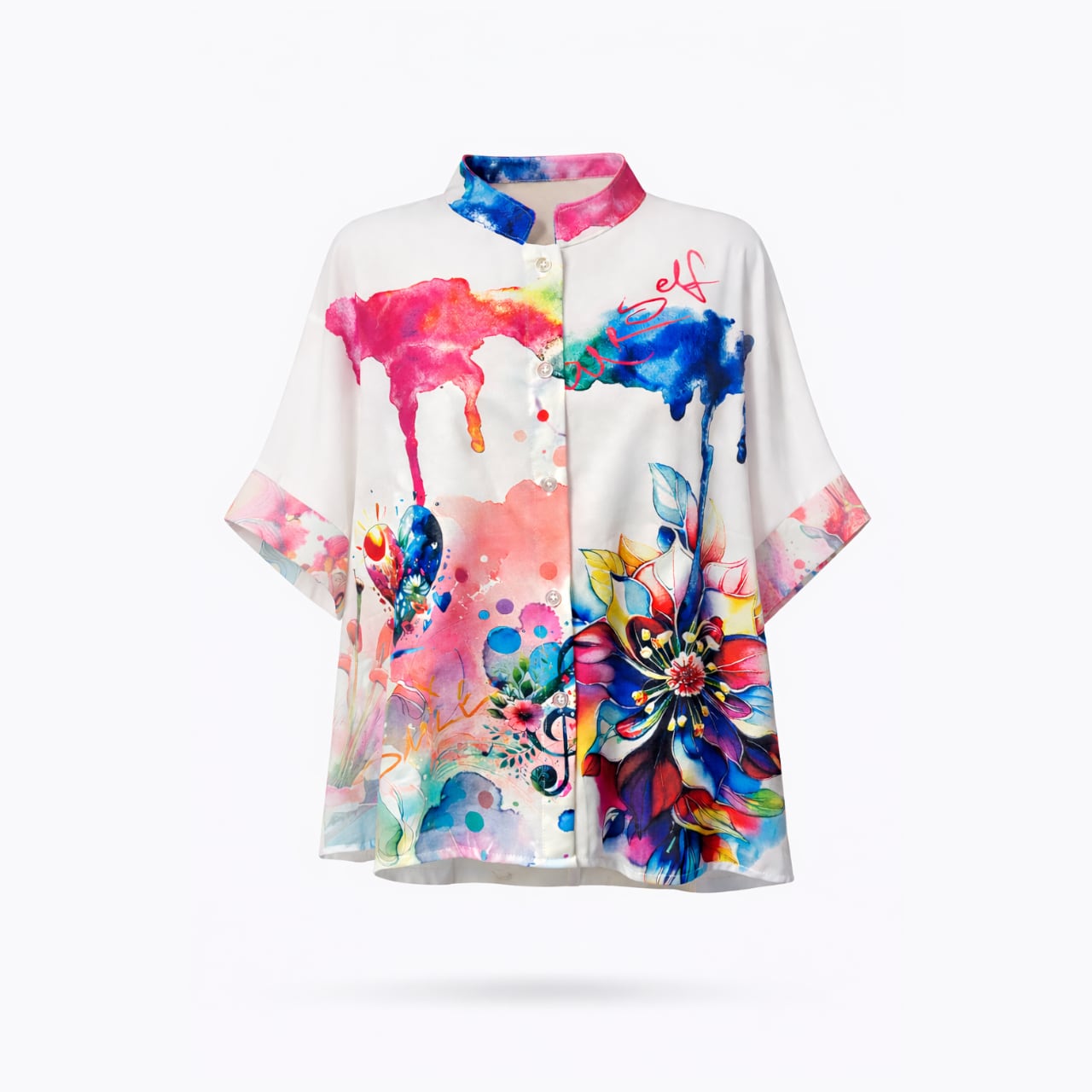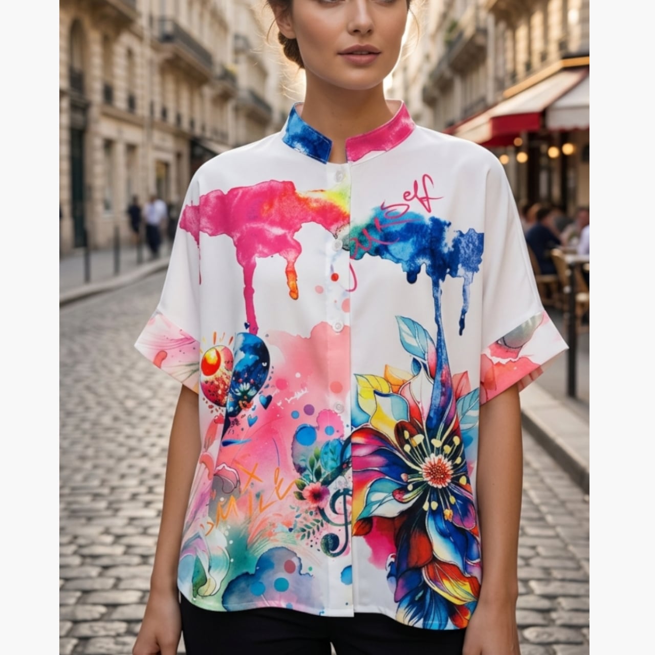 アートプリント シアーブラウス レディース 半袖 体型カバー ゆったり 洗える 花柄 カラフル セットアップ対応 春夏 大人おしゃれ